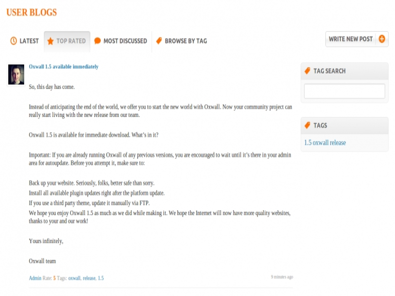 Create captivating blogs on your OxWall website with the feature-rich "Blogs" plugin. This powerful tool offers all the necessary functionalities to unleash your creativity and share engaging content with your community.