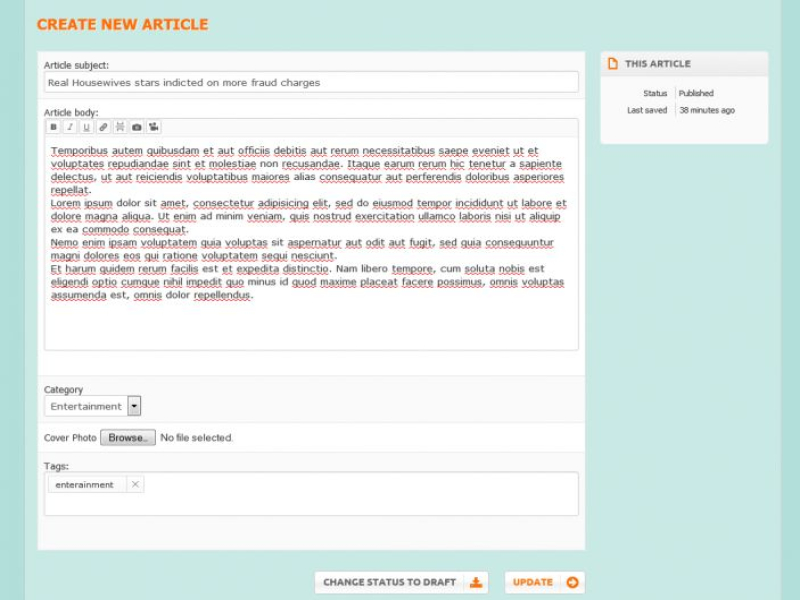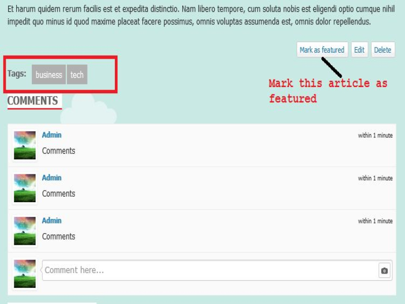 User can save article as draft and publish article later. Admin/moderators can also make article featured to promote interesting articles.