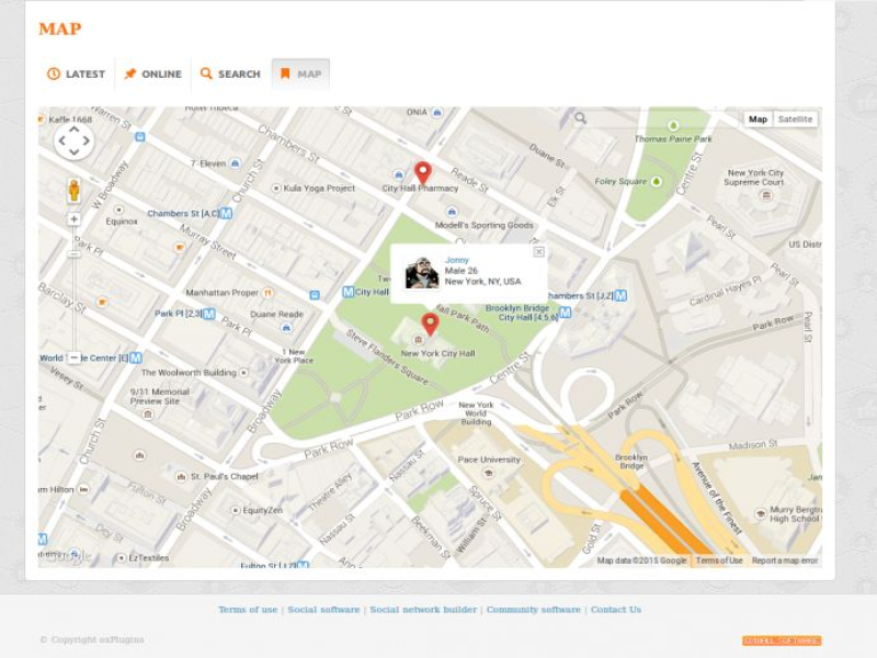 Also, the plugin adds a general map where you can find site's users' location.