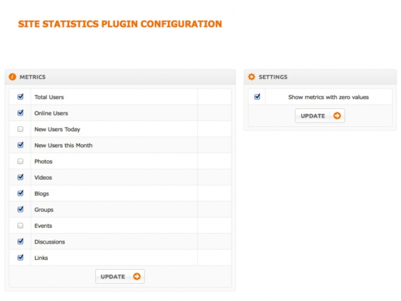 Various metrics can be enabled/disabled in the admin panel on the plugin configuration page.