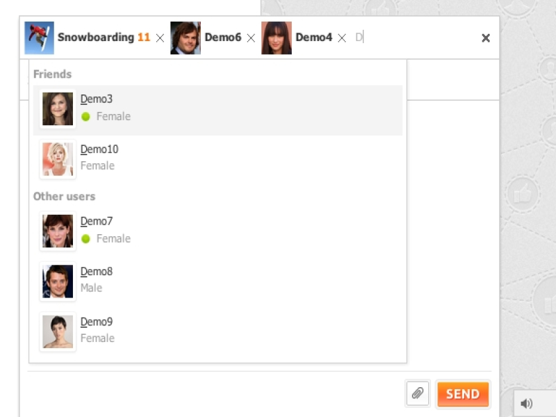 Autosuggest recipients ( Users, Friends, Groups and events )